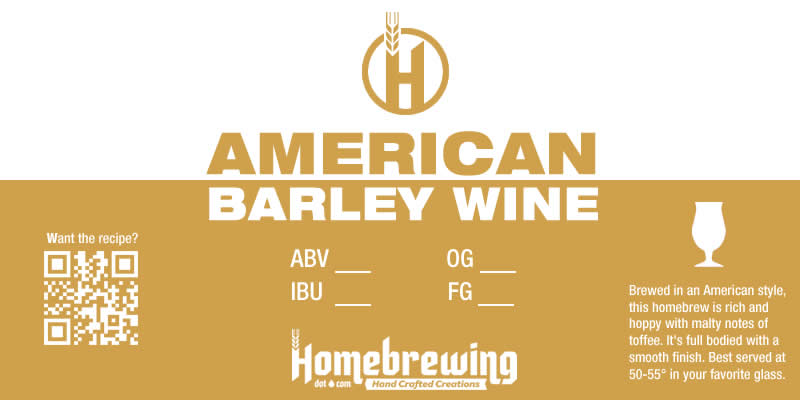 American Barleywine is an old American ale that descended from strong "October" style beers brewed on country estates. The flavor has loads of complex malt backed up by an American mix of hops. The aroma gives you a huge hit of spicy American hops and rich fruity malt. The balance of this style can be malty or hoppy depending on the homebrewer's preference. American barleywine is brewed year round and is best in winter. They are great with very intense foods, but better with dessert. (Try it with a strong American Blue Cheese or Double Gloucester cheese with chives and green onions.)