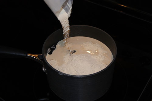 Add Dry Malt Extract (DME), 3 oz or 84g (approx. 1/2 cup). Stir the mixture until all the clumps are gone. Return the solution to a boil for 3-5 minutes to ensure the nutrients have completely dissolved.