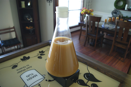 When fermentation occurs, the yeast starter is ready. You have helped your yeast to multiply to 4 or 5 times their initial number and they are now ready. Pitch the yeast starter as you normally would when you brew. Remember to swirl the yeast mixture in the flask very well to re-suspend all the yeast from the bottom of the flask. If you are making a lager, make sure you bring the temperature of the starter down to match the temperature of the cooled wort before you pitch, so you don't cold shock your yeast.