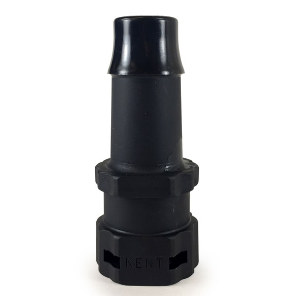 This Kent Systems 1/2" Barb X Female fitting is a female 300 series fitting that works with male 300 series fittings. It is an open-flow connector that is often used in gas or liquid applications.