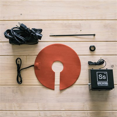 The MTSs is designed for use with Ss Brewtech’s Infusion Mash Tun. During extended Mash periods or in relatively cold ambient temperatures, the mash will naturally drop in temperature. With the MTSs you will be able to provide better controlled temperatures during the mash scarification process. Holding a consistent scarification temperature will insure you are making the beer and flavor profiles you planned to produce. The MTSs is a low wattage silicone heater pad, which is bonded to the underside of the 5 degree sloped bottom on your Mash Tun using a strong adhesive backing on the heater pad. The heater is controlled with a 12 volt digital temp controller. You simply set your target temperature and the heater will cycle on and of to maintain your set point. This system is NOT designed for heating water to strike temp and/or step mashing, though it can help with fine tuning your strike water temp those last few degrees and/or maintaining your strike water temp while you are preparing your grist or balancing your water chemistry.