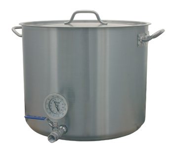 Our famous MoreBeer! Heavy Duty Brew Kettles are now fully assembled Mash Tuns! Each kettle has two 1/2" threaded couplers welded to them, a thermometer, 1/2" full port ball valve and a false bottom. The bottom outlet is very unique with male threads on the outside (for connecting a ball valve) and female threads on the inside for connecting whatever you wish. Check out these features!,,They Will Last a Lifetime!,Constructed from durable, long-lasting stainless steel, these kettles are virtually dent proof. Over the years, we have heard countless stories from brewers who have ruined their thin-walled kettles by dropping and denting them. This is no longer an issue with these beefy, super-thick kettles.,,Tri-Clad Bottom,Our kettles are built with a tri-clad bottom featuring an aluminum core sandwiched between two layers of stainless steel. Aluminum allows for even heat distribution while the food-grade stainless steel is the only metal in contact with your wort. Even heat distribution eliminates hot spots, which prevents scorching of your malt and makes cleanup a breeze!,,Seamless - Made from a single piece of metal,Our kettles are drawn, meaning the kettle is made from one piece of stainless steel. No welded seams.,,Heavy Duty Handles!,The handles on these kettles are just as heavy duty as the rest of the kettle. This is because they are made from rolled stainless steel, which is strong and easy on your hands.,,Mash Tuns include a false bottom and a high quality thermometer. The 18-gauge stainless steel false-bottom features a perforation of 3/32 holes on 5/32 centers. This is considered standard commercial sizing. If the perforation is larger, you get too much grain husk material falling through. If the perforation is smaller you risk stuck mashes when using flaked grains or high percentages of wheat - especially when using a pump to recirculate the mash., ,Specifications,,,10 Year Warranty from MoreBeer!,,,Food Grade Stainless Steel with brushed finish will stay good looking for years,,,Extra thick. 1.2 mm thick sidewall and a 5mm thick bottom!,,,Includes stainless lid and handles,,,The same kettle we use in our famous BrewSculpture Brewing Systems,,,14" H x 18" D
