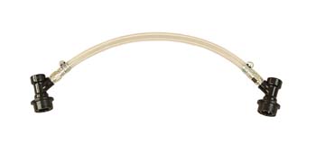 Push product or sanitizer from one keg to the next. Two black, beverage quick disconnects with flare fittings attached via a one foot piece of beverage line.