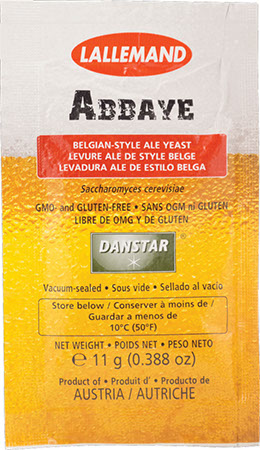 Abbaye is an ale yeast of Belgian origin selected for its ability to produce great Belgian style beers including high gravity beers such as Dubbel, Trippel and Quads. The propagation and drying processes have been specifically designed to deliver high quality beer yeast that can be used simply and reliably to help produce ales of the finest quality.,,Brewing Properties:,,,Fermentation can be completed in 4 days above 17°C (63°F).,,,Medium to high attenuation and high alcohol tolerance.,,,Fermentation rate, fermentation time and degree of attenuation depend on inoculation density, yeast handling, fermentation temperature and nutritional quality of wort.,,,Low flocculation rate; settling can be promoted by cooling and by using fining agents and isinglass.,,,Complex aroma and flavors may include peppery, fruity, banana, clovy, alcoholic, sweet and fruity. Does not display undesirable odors when properly handled.